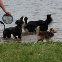 Zkoušky proběhly na travnaté, velmi brzy bahnité části místního koupaliště, jumping a agility jsme si zaběhli na písečné pláži, kdy se startovalo jen dva metry od vodní hladiny. Tassynce se podařilo vyhrát ve zkoušce a jumpingu a Cheese it byl ve zkoušce druhý :o). S Cheesim jsme v neděli pojali závody tréninkově, zato Tassy vytrála agility i jumping a ve zkoušce obsadila druhé místo. _________________________________________________